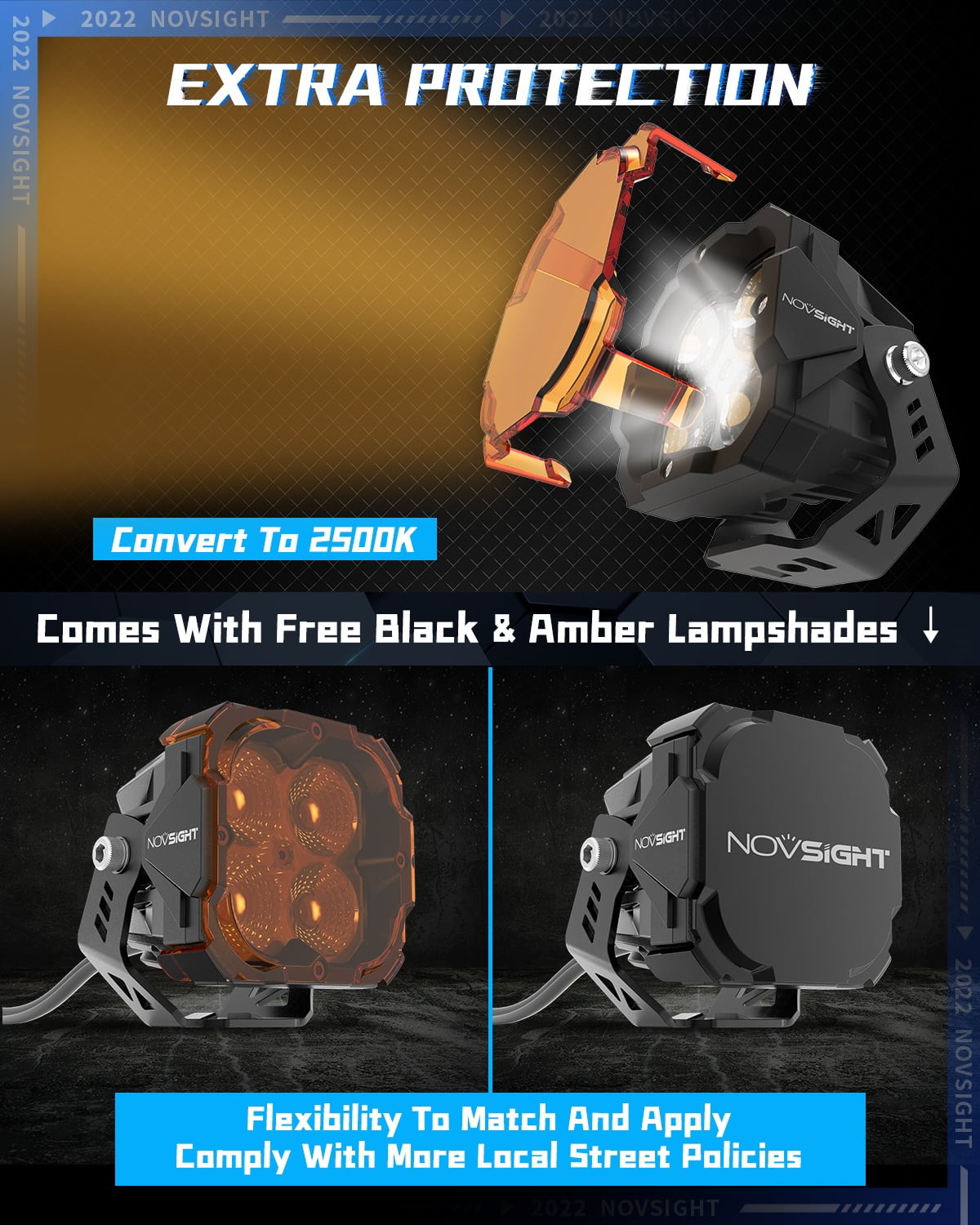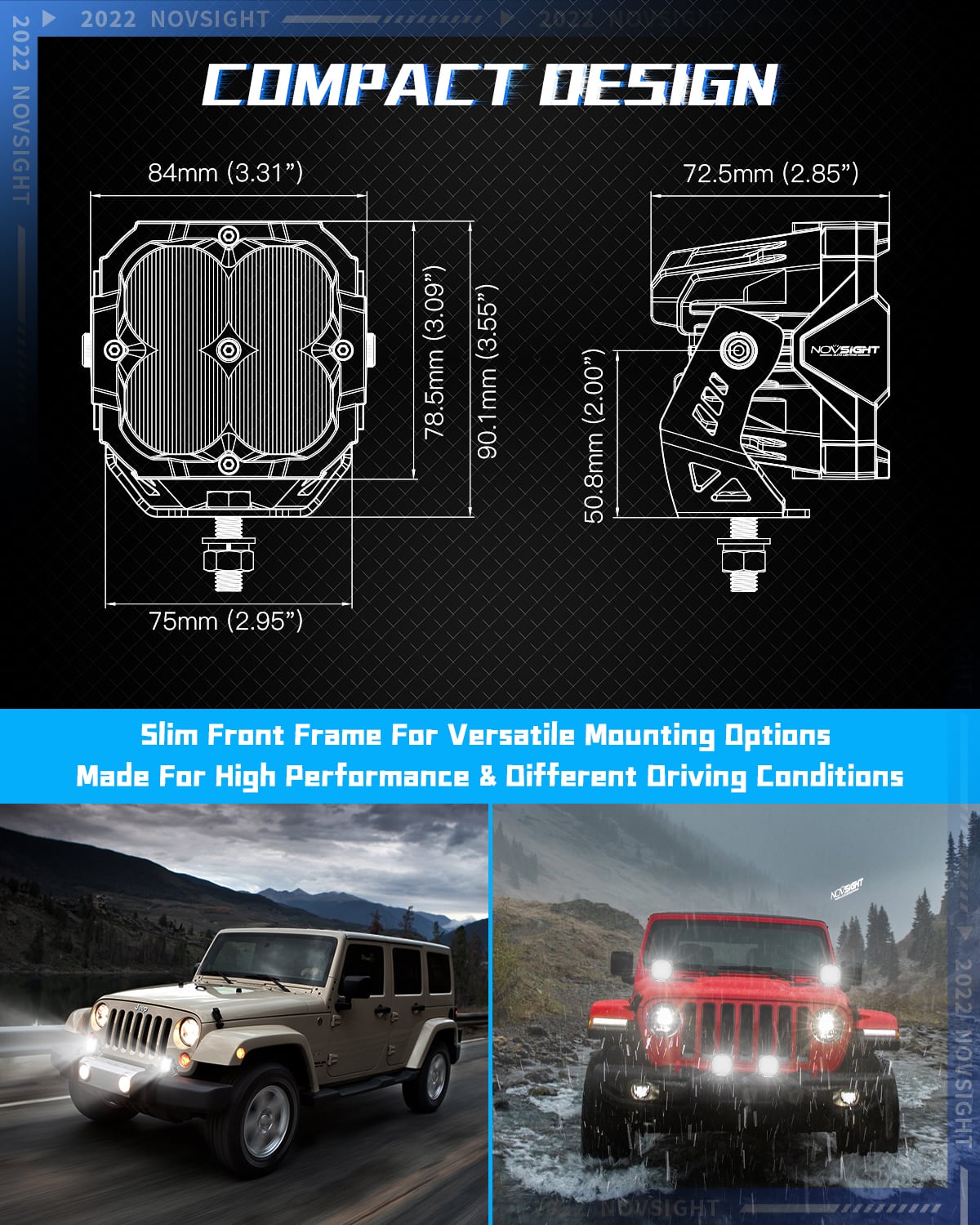 最高級の素材から作られ、最も過酷な条件に耐えるように作られています。単なる照明ではなく、オフロードの信頼できるパートナーです。Novsightを際立たせる強さを体験してください。