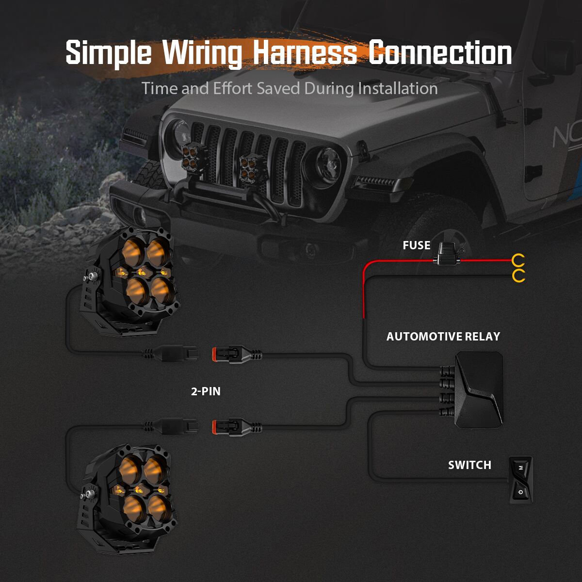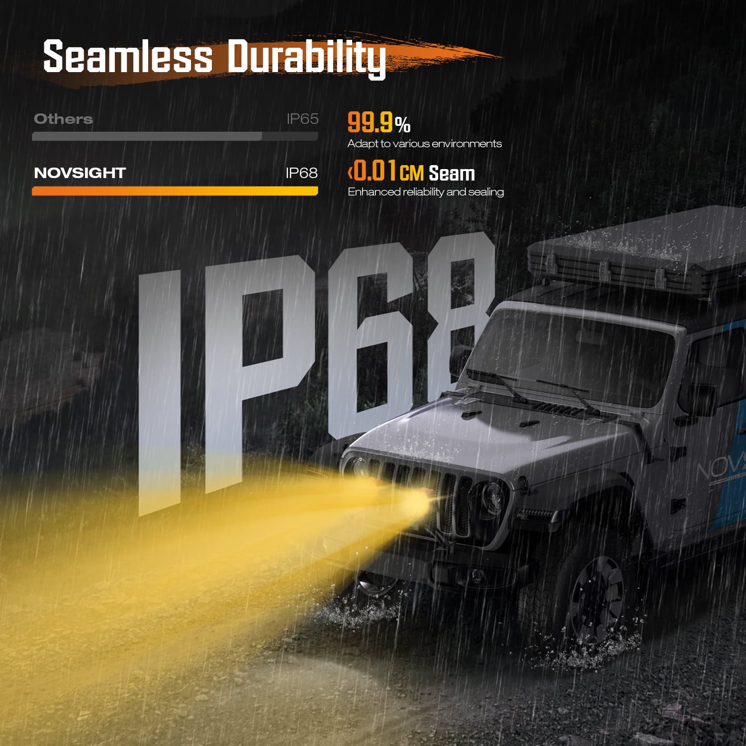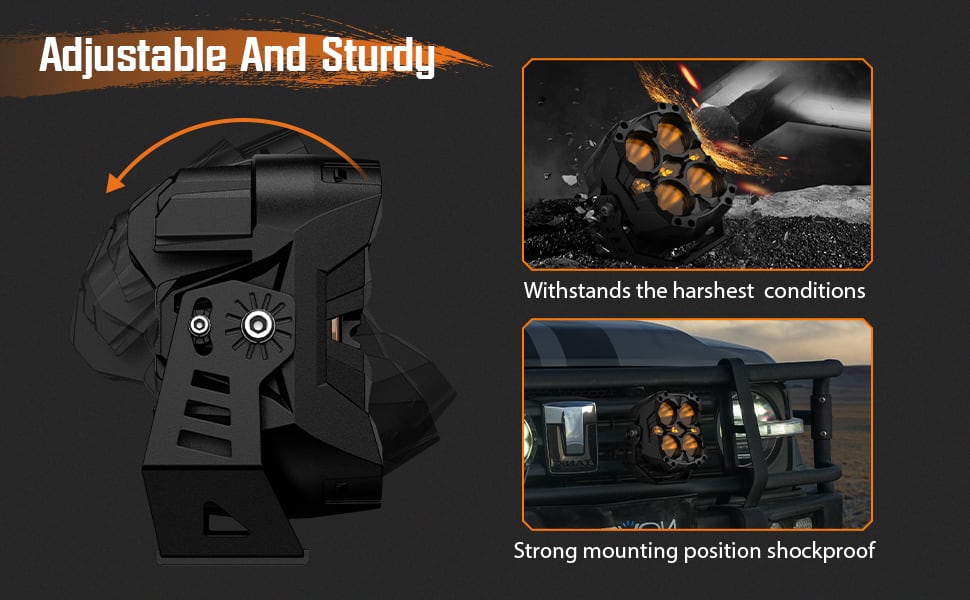ドライビングライトモードを有効にすると、光学的に検証されたレンズと組み合わせると、最大幅80フィート、距離500フィートの照明範囲を提供できます。また、ロービーム、ハイビーム、混合モードを切り替えることで、さまざまな地形の照明ニーズに対応できます。広い照明範囲により、スポットライトモードでの近接照明の不足を補うことができます。もちろん、スポットライトとドライビング ライトを同時にオンにして、最適な光出力を実現できます。