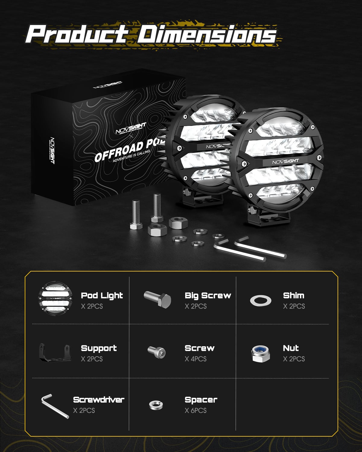 各ポッドライトペアは、最大360Wの電力と48,600ルーメン、6000Kの白色輝度を提供します。16 個の高効率 LEDチップを搭載し、比類のない明るさで最も暗い環境でも細部まで見渡すことができます。