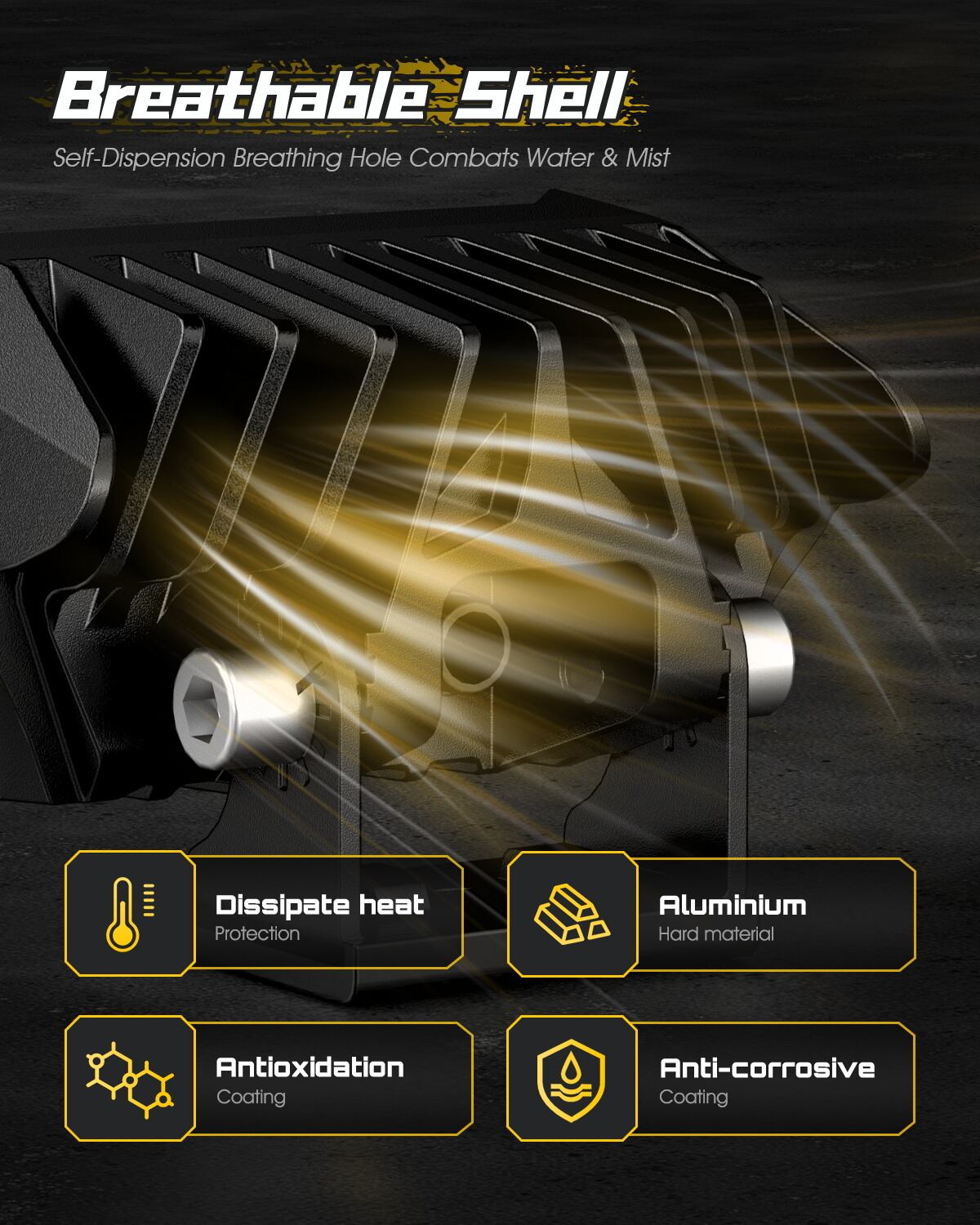 各ペアは 40W の電力と 6000K の明るさを提供し、2 つの選択可能なモード (長距離照明用のスポットライトと広範囲照明用のフラッドライト) を備えています。高度な LED チップを使用することで、強力で安定した光出力を実現し、さまざまなオフロード愛好家のニーズに応えます。